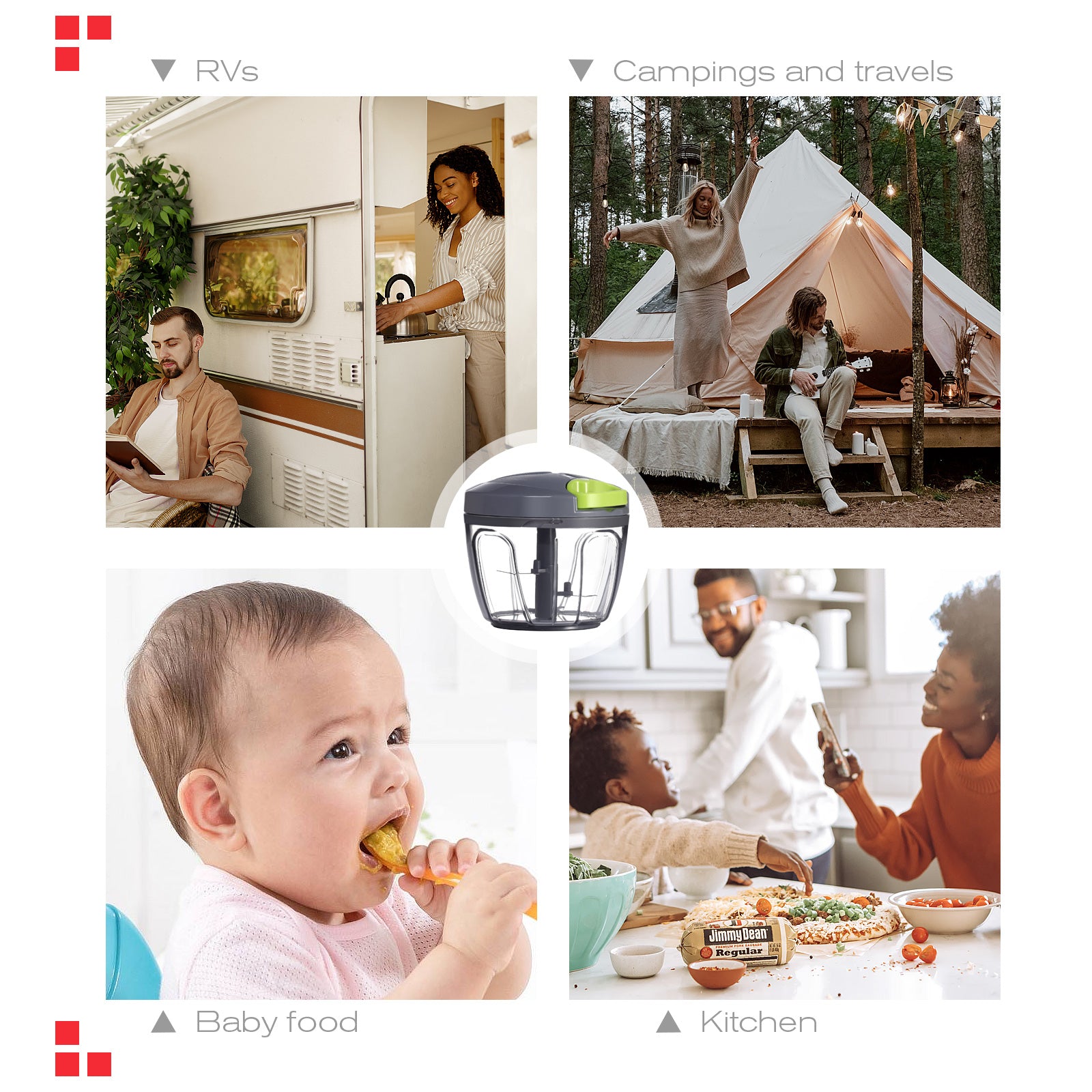 - Suitable for many occasions: No need electrical and operation skills, as its compact size, the mini veggie chopper not only suitable for kitchen, but also for travelling, camping, RVs, outdoor BBQ and more. It's also the perfect gift for all occasion.